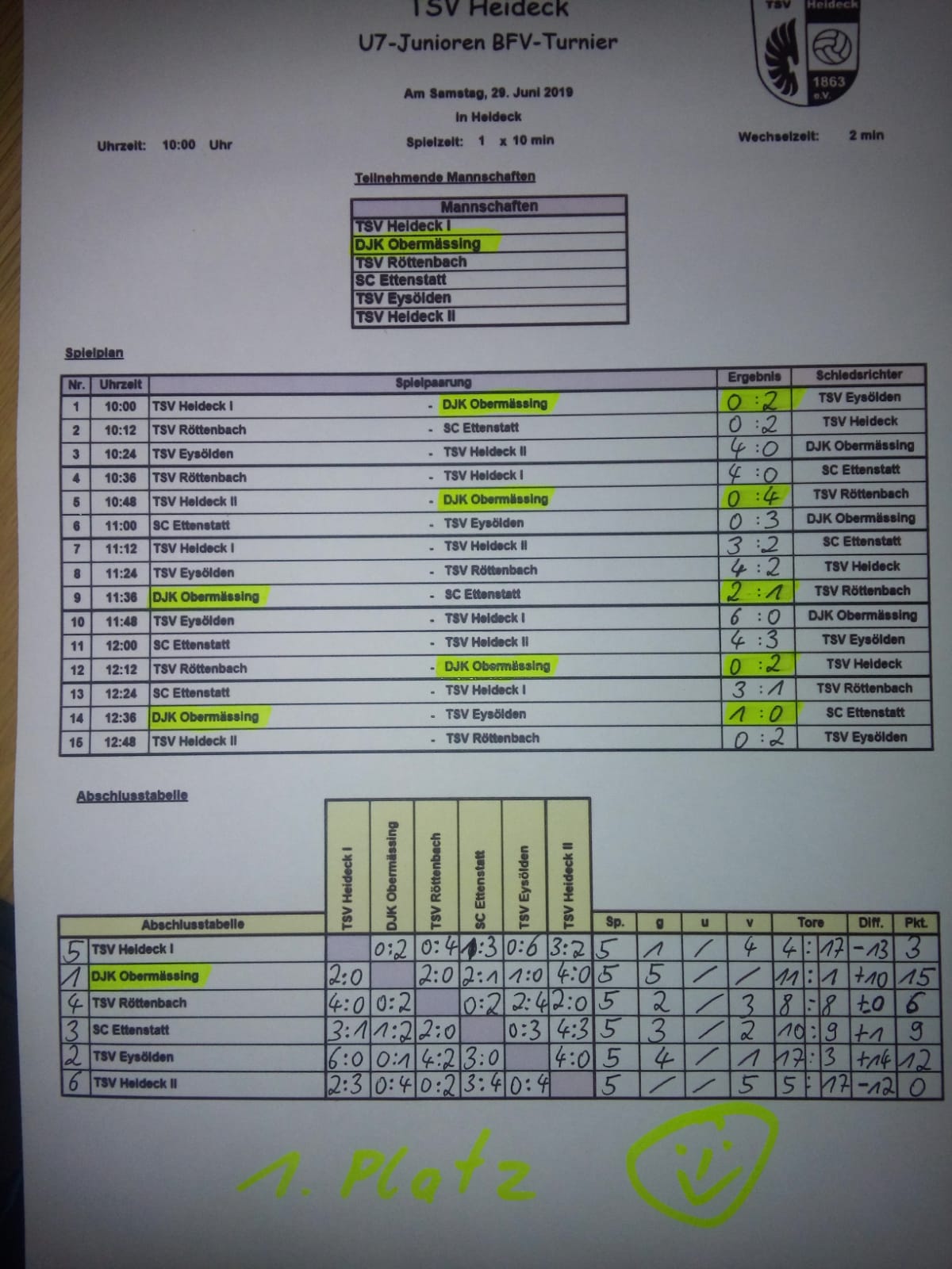 Und wieder haben unsere Jungs der U7 ein tolles Turnier gespielt und erreichten ohne Niederlage Platz 1 beim TSV Heideck am 29.06.19